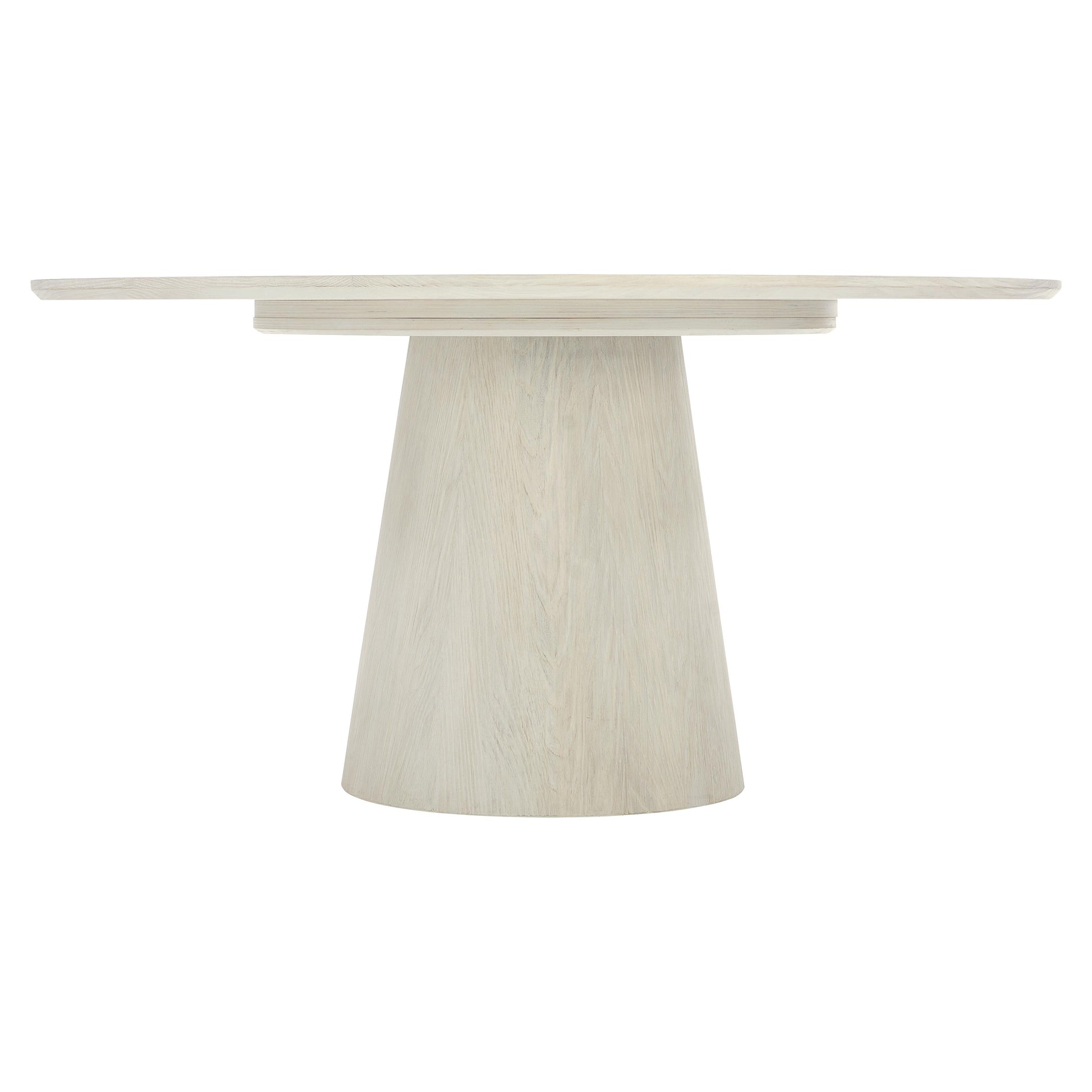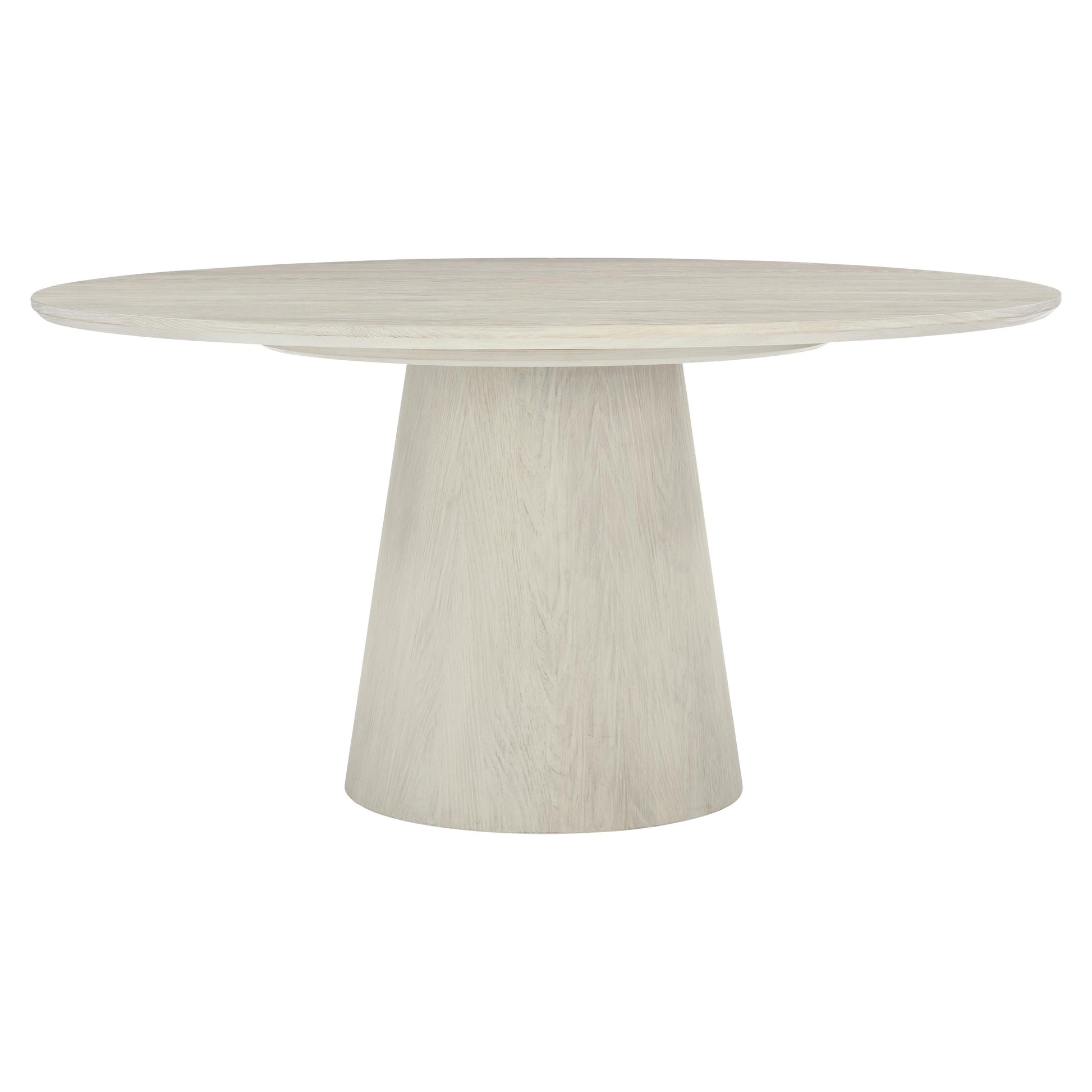 Crafted from sandblasted white oak in a jicama finish, this sophisticated modern dining table has a natural and serene look.