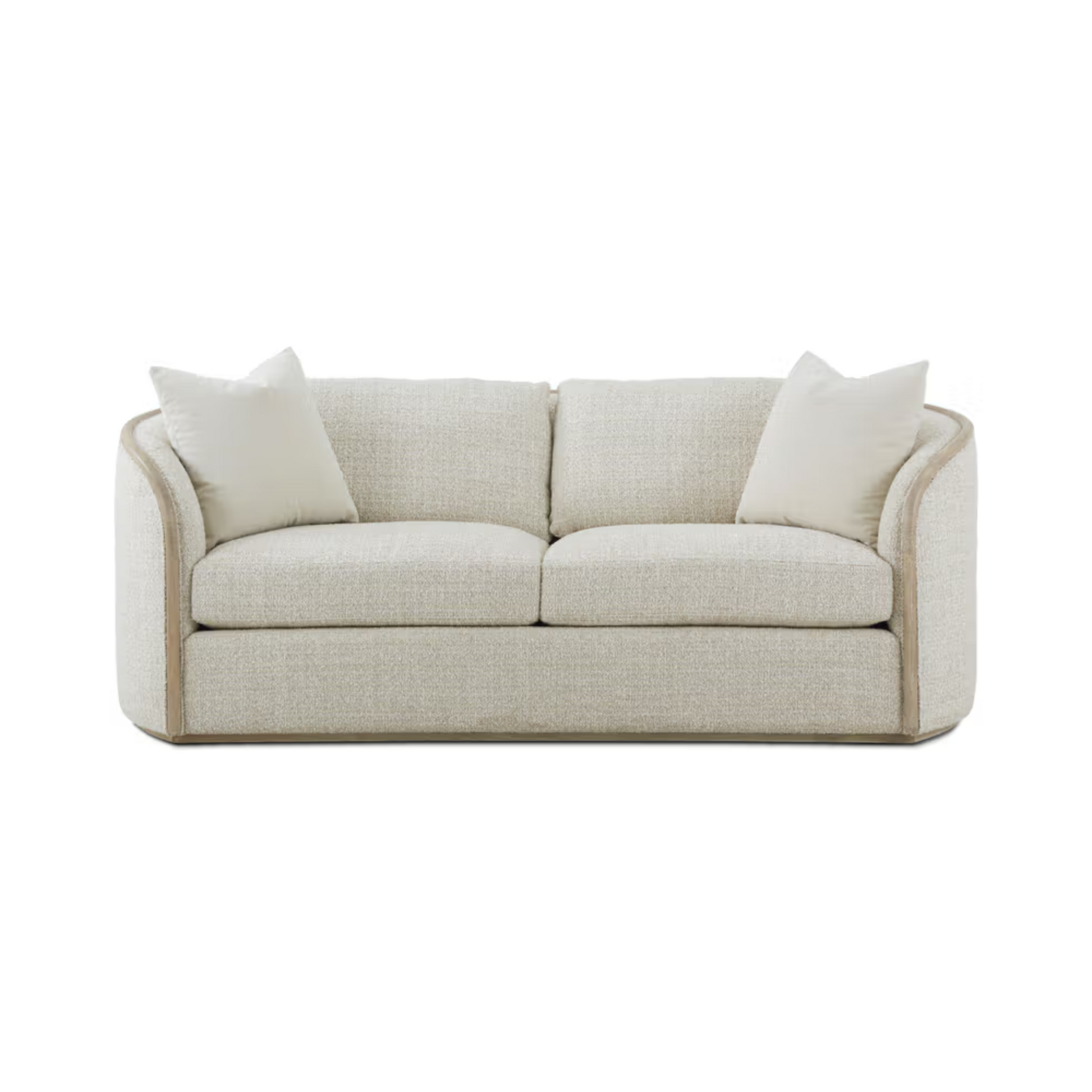 A refined and versatile seating option that combines the natural beauty of wood paired with textural chenille.